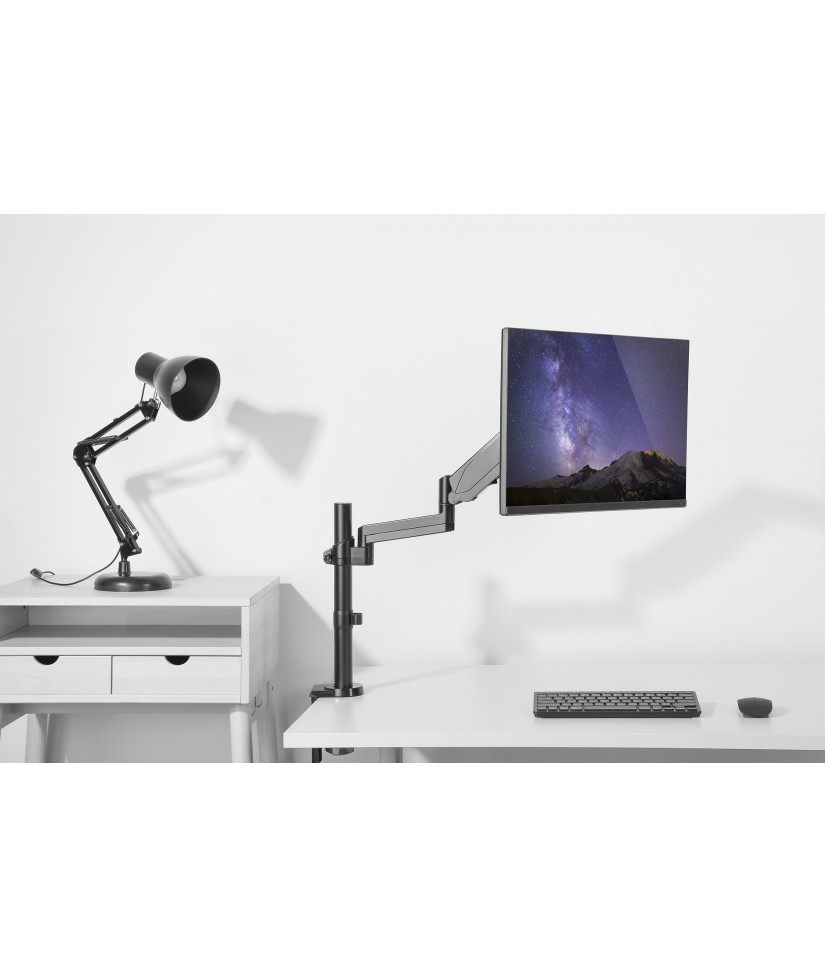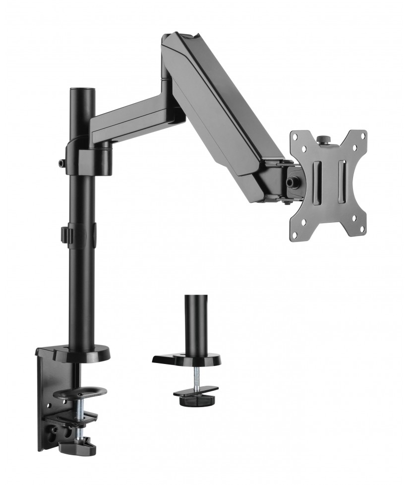 This is an ultimate monitor desk mount with gas spring. It comes with full motion capabilities to enhance the use of computer monitor.