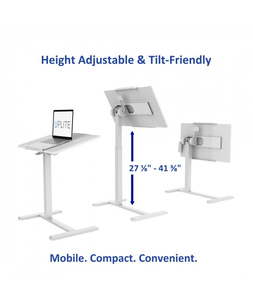 Uplite Height Adjustable Mobile Desk – Sit Stand Tilting Overbed Table Sofa Side Desk with Wheels