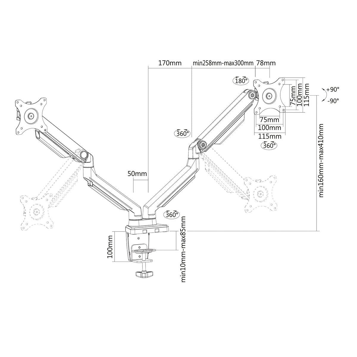 - Mechanical spring system provides smooth and adjustable monitor height and positioning
