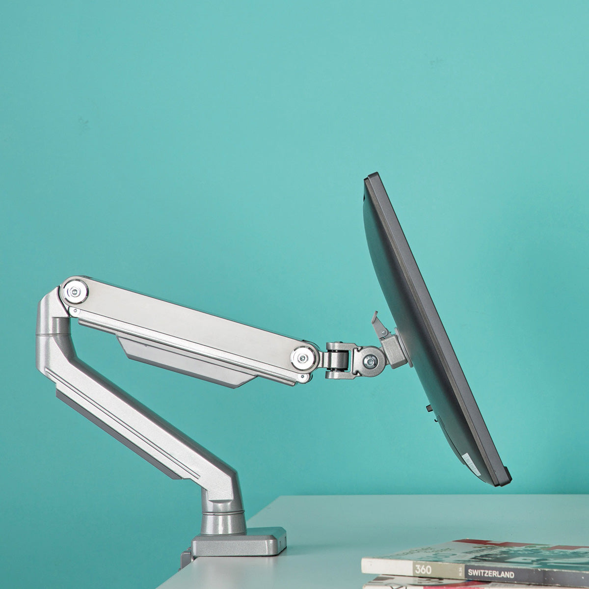 - Mechanical spring arm allows smooth height and angle adjustments with light touch control